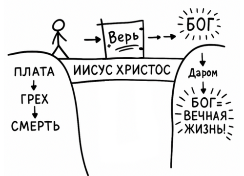 Бог так любит человека, что Сам рождается в этот мир как маленьких младенец (Иисус Христос). Он живет безгрешной жизнью. Умирает на Кресте. Он умирает за грехи людей. Наказание за грех оплачено. Теперь каждый, кто принимает это ВЕРОЙ, может жить...